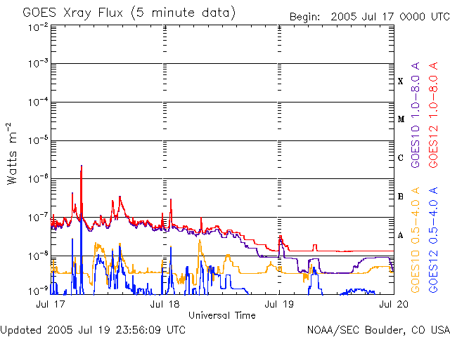 De operationele data in de bovenstaande grafiek werd aangepast om de schaalfactor te verwijderen die werd toegepast door het Space Weather Prediction Center (SWPC). Vanwege de SWPC-schaalfactor in de operationele data werden de zonnevlammen 42% kleiner gerapporteerd dan deze in de wetenschappelijke data. De schaalfactor werd ook verwijderd uit de lijst met zonnevlammen om de werkelijke fysieke eenheden weer te geven.