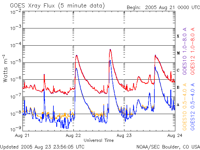 De operationele data in de bovenstaande grafiek werd aangepast om de schaalfactor te verwijderen die werd toegepast door het Space Weather Prediction Center (SWPC). Vanwege de SWPC-schaalfactor in de operationele data werden de zonnevlammen 42% kleiner gerapporteerd dan deze in de wetenschappelijke data. De schaalfactor werd ook verwijderd uit de lijst met zonnevlammen om de werkelijke fysieke eenheden weer te geven.