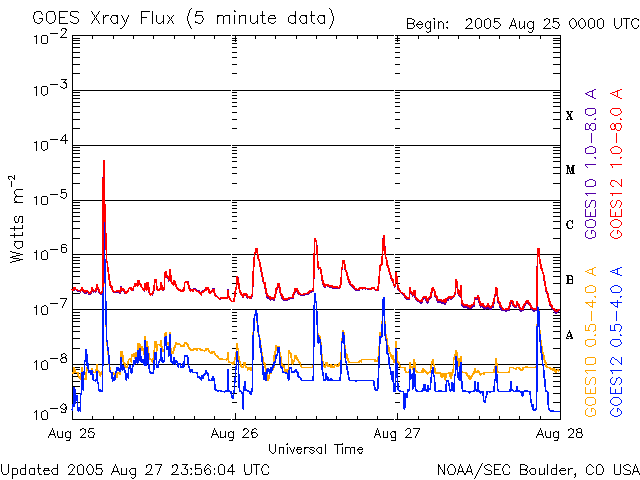 De operationele data in de bovenstaande grafiek werd aangepast om de schaalfactor te verwijderen die werd toegepast door het Space Weather Prediction Center (SWPC). Vanwege de SWPC-schaalfactor in de operationele data werden de zonnevlammen 42% kleiner gerapporteerd dan deze in de wetenschappelijke data. De schaalfactor werd ook verwijderd uit de lijst met zonnevlammen om de werkelijke fysieke eenheden weer te geven.