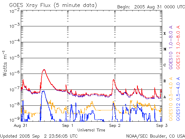 De operationele data in de bovenstaande grafiek werd aangepast om de schaalfactor te verwijderen die werd toegepast door het Space Weather Prediction Center (SWPC). Vanwege de SWPC-schaalfactor in de operationele data werden de zonnevlammen 42% kleiner gerapporteerd dan deze in de wetenschappelijke data. De schaalfactor werd ook verwijderd uit de lijst met zonnevlammen om de werkelijke fysieke eenheden weer te geven.