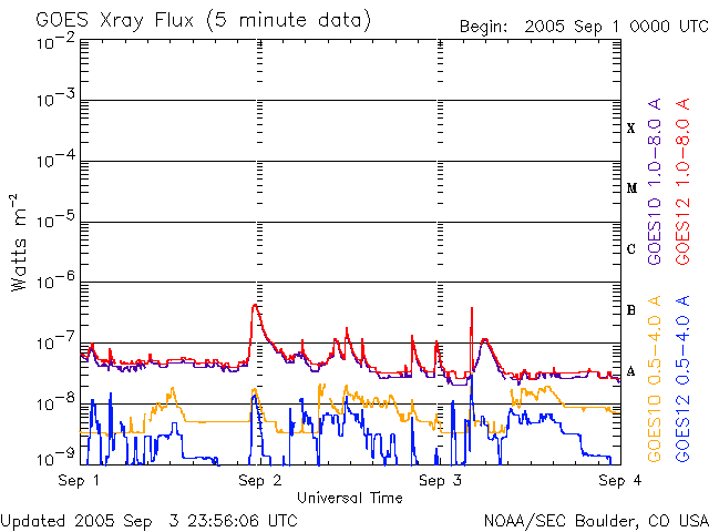 De operationele data in de bovenstaande grafiek werd aangepast om de schaalfactor te verwijderen die werd toegepast door het Space Weather Prediction Center (SWPC). Vanwege de SWPC-schaalfactor in de operationele data werden de zonnevlammen 42% kleiner gerapporteerd dan deze in de wetenschappelijke data. De schaalfactor werd ook verwijderd uit de lijst met zonnevlammen om de werkelijke fysieke eenheden weer te geven.