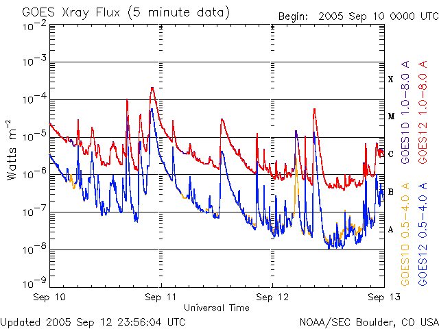 De operationele data in de bovenstaande grafiek werd aangepast om de schaalfactor te verwijderen die werd toegepast door het Space Weather Prediction Center (SWPC). Vanwege de SWPC-schaalfactor in de operationele data werden de zonnevlammen 42% kleiner gerapporteerd dan deze in de wetenschappelijke data. De schaalfactor werd ook verwijderd uit de lijst met zonnevlammen om de werkelijke fysieke eenheden weer te geven.