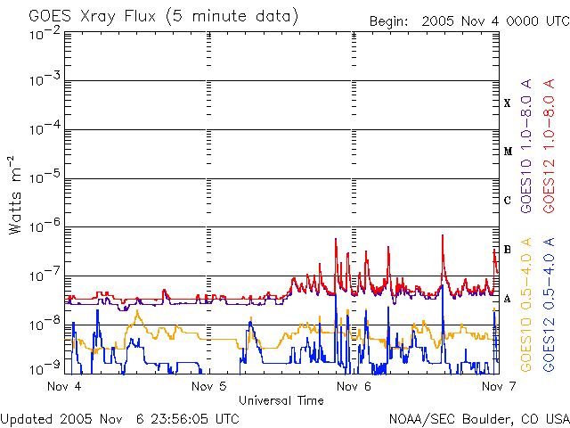 De operationele data in de bovenstaande grafiek werd aangepast om de schaalfactor te verwijderen die werd toegepast door het Space Weather Prediction Center (SWPC). Vanwege de SWPC-schaalfactor in de operationele data werden de zonnevlammen 42% kleiner gerapporteerd dan deze in de wetenschappelijke data. De schaalfactor werd ook verwijderd uit de lijst met zonnevlammen om de werkelijke fysieke eenheden weer te geven.
