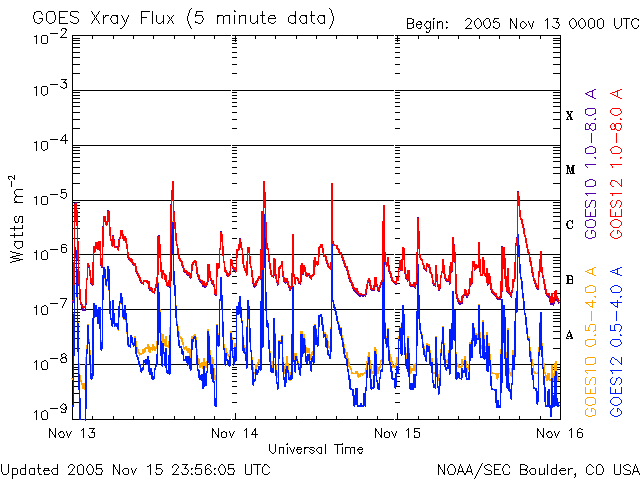 De operationele data in de bovenstaande grafiek werd aangepast om de schaalfactor te verwijderen die werd toegepast door het Space Weather Prediction Center (SWPC). Vanwege de SWPC-schaalfactor in de operationele data werden de zonnevlammen 42% kleiner gerapporteerd dan deze in de wetenschappelijke data. De schaalfactor werd ook verwijderd uit de lijst met zonnevlammen om de werkelijke fysieke eenheden weer te geven.
