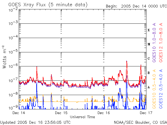 De operationele data in de bovenstaande grafiek werd aangepast om de schaalfactor te verwijderen die werd toegepast door het Space Weather Prediction Center (SWPC). Vanwege de SWPC-schaalfactor in de operationele data werden de zonnevlammen 42% kleiner gerapporteerd dan deze in de wetenschappelijke data. De schaalfactor werd ook verwijderd uit de lijst met zonnevlammen om de werkelijke fysieke eenheden weer te geven.
