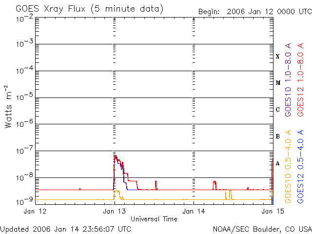De operationele data in de bovenstaande grafiek werd aangepast om de schaalfactor te verwijderen die werd toegepast door het Space Weather Prediction Center (SWPC). Vanwege de SWPC-schaalfactor in de operationele data werden de zonnevlammen 42% kleiner gerapporteerd dan deze in de wetenschappelijke data. De schaalfactor werd ook verwijderd uit de lijst met zonnevlammen om de werkelijke fysieke eenheden weer te geven.