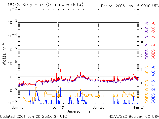 De operationele data in de bovenstaande grafiek werd aangepast om de schaalfactor te verwijderen die werd toegepast door het Space Weather Prediction Center (SWPC). Vanwege de SWPC-schaalfactor in de operationele data werden de zonnevlammen 42% kleiner gerapporteerd dan deze in de wetenschappelijke data. De schaalfactor werd ook verwijderd uit de lijst met zonnevlammen om de werkelijke fysieke eenheden weer te geven.