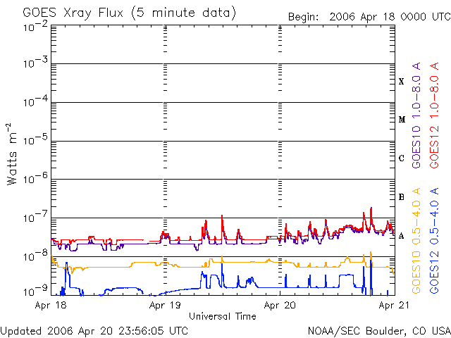 De operationele data in de bovenstaande grafiek werd aangepast om de schaalfactor te verwijderen die werd toegepast door het Space Weather Prediction Center (SWPC). Vanwege de SWPC-schaalfactor in de operationele data werden de zonnevlammen 42% kleiner gerapporteerd dan deze in de wetenschappelijke data. De schaalfactor werd ook verwijderd uit de lijst met zonnevlammen om de werkelijke fysieke eenheden weer te geven.