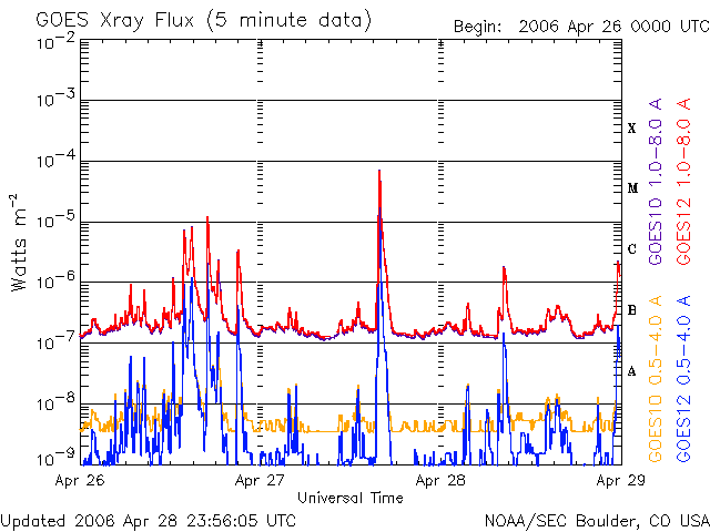 De operationele data in de bovenstaande grafiek werd aangepast om de schaalfactor te verwijderen die werd toegepast door het Space Weather Prediction Center (SWPC). Vanwege de SWPC-schaalfactor in de operationele data werden de zonnevlammen 42% kleiner gerapporteerd dan deze in de wetenschappelijke data. De schaalfactor werd ook verwijderd uit de lijst met zonnevlammen om de werkelijke fysieke eenheden weer te geven.