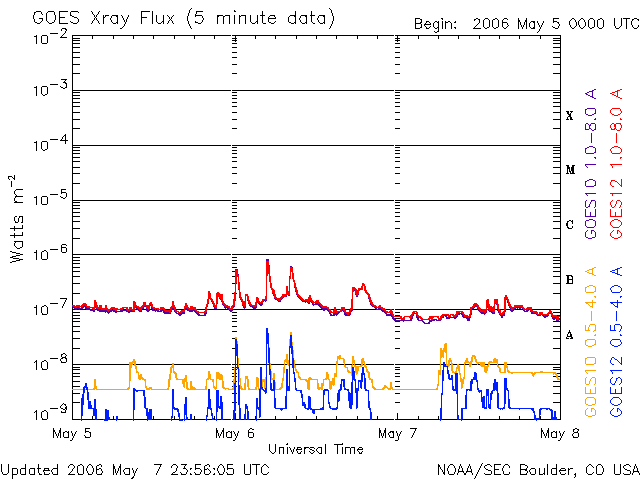 De operationele data in de bovenstaande grafiek werd aangepast om de schaalfactor te verwijderen die werd toegepast door het Space Weather Prediction Center (SWPC). Vanwege de SWPC-schaalfactor in de operationele data werden de zonnevlammen 42% kleiner gerapporteerd dan deze in de wetenschappelijke data. De schaalfactor werd ook verwijderd uit de lijst met zonnevlammen om de werkelijke fysieke eenheden weer te geven.