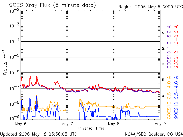 De operationele data in de bovenstaande grafiek werd aangepast om de schaalfactor te verwijderen die werd toegepast door het Space Weather Prediction Center (SWPC). Vanwege de SWPC-schaalfactor in de operationele data werden de zonnevlammen 42% kleiner gerapporteerd dan deze in de wetenschappelijke data. De schaalfactor werd ook verwijderd uit de lijst met zonnevlammen om de werkelijke fysieke eenheden weer te geven.