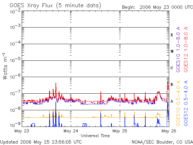 De operationele data in de bovenstaande grafiek werd aangepast om de schaalfactor te verwijderen die werd toegepast door het Space Weather Prediction Center (SWPC). Vanwege de SWPC-schaalfactor in de operationele data werden de zonnevlammen 42% kleiner gerapporteerd dan deze in de wetenschappelijke data. De schaalfactor werd ook verwijderd uit de lijst met zonnevlammen om de werkelijke fysieke eenheden weer te geven.