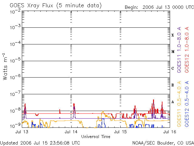 De operationele data in de bovenstaande grafiek werd aangepast om de schaalfactor te verwijderen die werd toegepast door het Space Weather Prediction Center (SWPC). Vanwege de SWPC-schaalfactor in de operationele data werden de zonnevlammen 42% kleiner gerapporteerd dan deze in de wetenschappelijke data. De schaalfactor werd ook verwijderd uit de lijst met zonnevlammen om de werkelijke fysieke eenheden weer te geven.