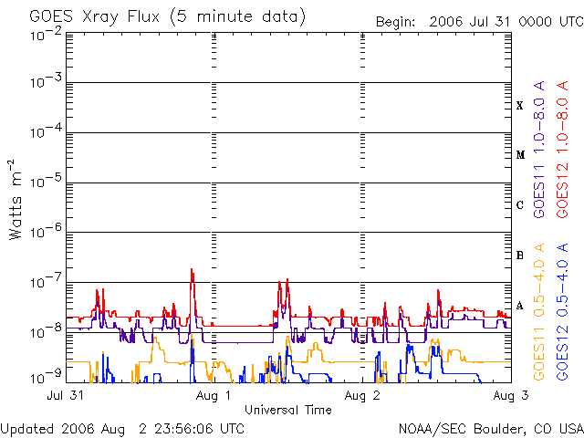 De operationele data in de bovenstaande grafiek werd aangepast om de schaalfactor te verwijderen die werd toegepast door het Space Weather Prediction Center (SWPC). Vanwege de SWPC-schaalfactor in de operationele data werden de zonnevlammen 42% kleiner gerapporteerd dan deze in de wetenschappelijke data. De schaalfactor werd ook verwijderd uit de lijst met zonnevlammen om de werkelijke fysieke eenheden weer te geven.