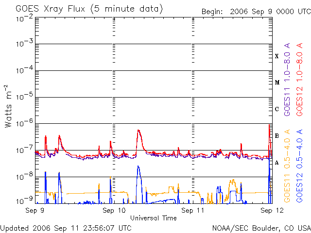 De operationele data in de bovenstaande grafiek werd aangepast om de schaalfactor te verwijderen die werd toegepast door het Space Weather Prediction Center (SWPC). Vanwege de SWPC-schaalfactor in de operationele data werden de zonnevlammen 42% kleiner gerapporteerd dan deze in de wetenschappelijke data. De schaalfactor werd ook verwijderd uit de lijst met zonnevlammen om de werkelijke fysieke eenheden weer te geven.
