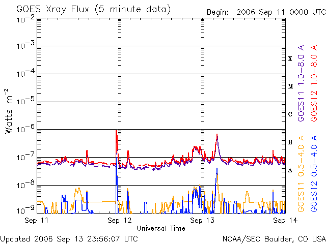 De operationele data in de bovenstaande grafiek werd aangepast om de schaalfactor te verwijderen die werd toegepast door het Space Weather Prediction Center (SWPC). Vanwege de SWPC-schaalfactor in de operationele data werden de zonnevlammen 42% kleiner gerapporteerd dan deze in de wetenschappelijke data. De schaalfactor werd ook verwijderd uit de lijst met zonnevlammen om de werkelijke fysieke eenheden weer te geven.
