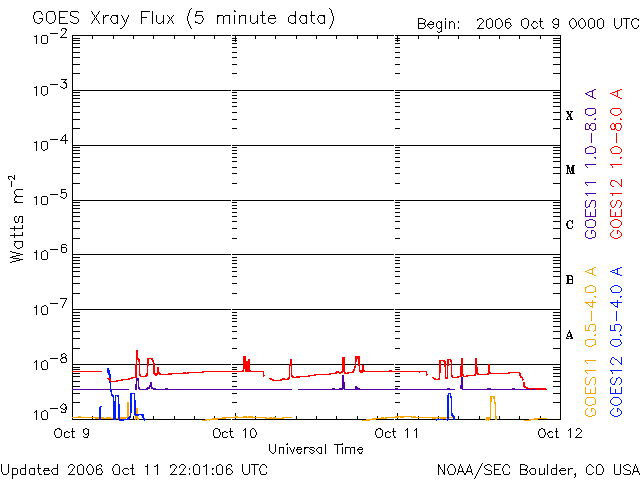 De operationele data in de bovenstaande grafiek werd aangepast om de schaalfactor te verwijderen die werd toegepast door het Space Weather Prediction Center (SWPC). Vanwege de SWPC-schaalfactor in de operationele data werden de zonnevlammen 42% kleiner gerapporteerd dan deze in de wetenschappelijke data. De schaalfactor werd ook verwijderd uit de lijst met zonnevlammen om de werkelijke fysieke eenheden weer te geven.