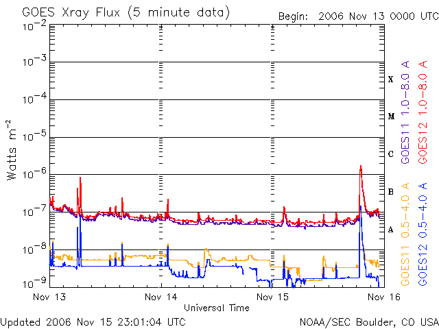 De operationele data in de bovenstaande grafiek werd aangepast om de schaalfactor te verwijderen die werd toegepast door het Space Weather Prediction Center (SWPC). Vanwege de SWPC-schaalfactor in de operationele data werden de zonnevlammen 42% kleiner gerapporteerd dan deze in de wetenschappelijke data. De schaalfactor werd ook verwijderd uit de lijst met zonnevlammen om de werkelijke fysieke eenheden weer te geven.