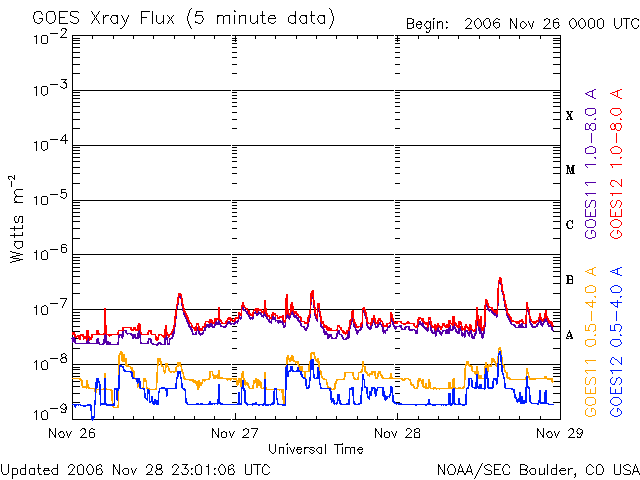 De operationele data in de bovenstaande grafiek werd aangepast om de schaalfactor te verwijderen die werd toegepast door het Space Weather Prediction Center (SWPC). Vanwege de SWPC-schaalfactor in de operationele data werden de zonnevlammen 42% kleiner gerapporteerd dan deze in de wetenschappelijke data. De schaalfactor werd ook verwijderd uit de lijst met zonnevlammen om de werkelijke fysieke eenheden weer te geven.