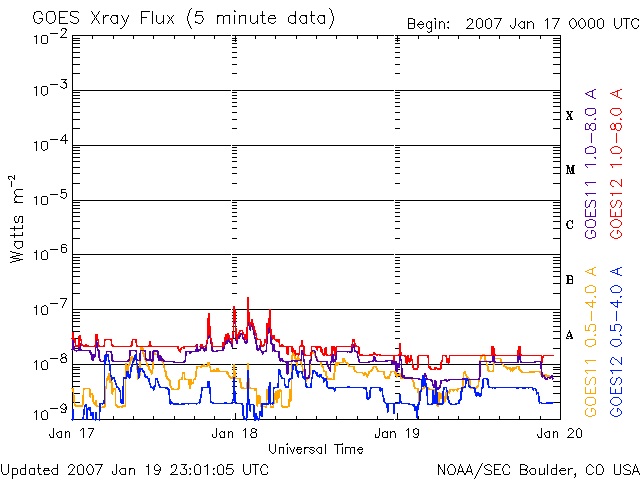 De operationele data in de bovenstaande grafiek werd aangepast om de schaalfactor te verwijderen die werd toegepast door het Space Weather Prediction Center (SWPC). Vanwege de SWPC-schaalfactor in de operationele data werden de zonnevlammen 42% kleiner gerapporteerd dan deze in de wetenschappelijke data. De schaalfactor werd ook verwijderd uit de lijst met zonnevlammen om de werkelijke fysieke eenheden weer te geven.