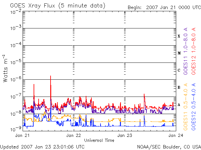 De operationele data in de bovenstaande grafiek werd aangepast om de schaalfactor te verwijderen die werd toegepast door het Space Weather Prediction Center (SWPC). Vanwege de SWPC-schaalfactor in de operationele data werden de zonnevlammen 42% kleiner gerapporteerd dan deze in de wetenschappelijke data. De schaalfactor werd ook verwijderd uit de lijst met zonnevlammen om de werkelijke fysieke eenheden weer te geven.
