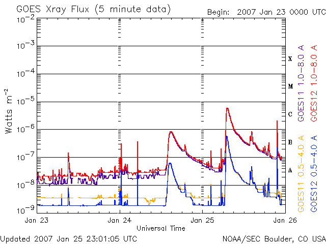 De operationele data in de bovenstaande grafiek werd aangepast om de schaalfactor te verwijderen die werd toegepast door het Space Weather Prediction Center (SWPC). Vanwege de SWPC-schaalfactor in de operationele data werden de zonnevlammen 42% kleiner gerapporteerd dan deze in de wetenschappelijke data. De schaalfactor werd ook verwijderd uit de lijst met zonnevlammen om de werkelijke fysieke eenheden weer te geven.