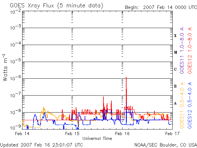 De operationele data in de bovenstaande grafiek werd aangepast om de schaalfactor te verwijderen die werd toegepast door het Space Weather Prediction Center (SWPC). Vanwege de SWPC-schaalfactor in de operationele data werden de zonnevlammen 42% kleiner gerapporteerd dan deze in de wetenschappelijke data. De schaalfactor werd ook verwijderd uit de lijst met zonnevlammen om de werkelijke fysieke eenheden weer te geven.