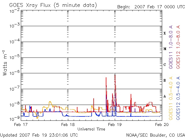 De operationele data in de bovenstaande grafiek werd aangepast om de schaalfactor te verwijderen die werd toegepast door het Space Weather Prediction Center (SWPC). Vanwege de SWPC-schaalfactor in de operationele data werden de zonnevlammen 42% kleiner gerapporteerd dan deze in de wetenschappelijke data. De schaalfactor werd ook verwijderd uit de lijst met zonnevlammen om de werkelijke fysieke eenheden weer te geven.