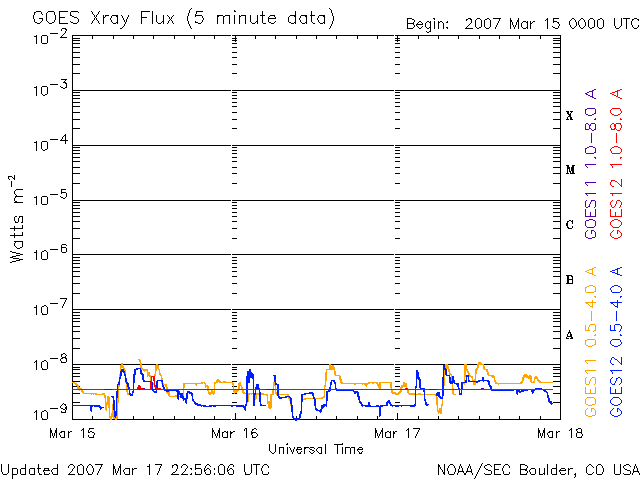 De operationele data in de bovenstaande grafiek werd aangepast om de schaalfactor te verwijderen die werd toegepast door het Space Weather Prediction Center (SWPC). Vanwege de SWPC-schaalfactor in de operationele data werden de zonnevlammen 42% kleiner gerapporteerd dan deze in de wetenschappelijke data. De schaalfactor werd ook verwijderd uit de lijst met zonnevlammen om de werkelijke fysieke eenheden weer te geven.