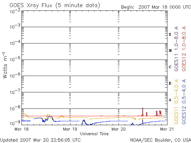 De operationele data in de bovenstaande grafiek werd aangepast om de schaalfactor te verwijderen die werd toegepast door het Space Weather Prediction Center (SWPC). Vanwege de SWPC-schaalfactor in de operationele data werden de zonnevlammen 42% kleiner gerapporteerd dan deze in de wetenschappelijke data. De schaalfactor werd ook verwijderd uit de lijst met zonnevlammen om de werkelijke fysieke eenheden weer te geven.