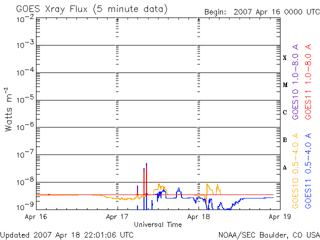 De operationele data in de bovenstaande grafiek werd aangepast om de schaalfactor te verwijderen die werd toegepast door het Space Weather Prediction Center (SWPC). Vanwege de SWPC-schaalfactor in de operationele data werden de zonnevlammen 42% kleiner gerapporteerd dan deze in de wetenschappelijke data. De schaalfactor werd ook verwijderd uit de lijst met zonnevlammen om de werkelijke fysieke eenheden weer te geven.