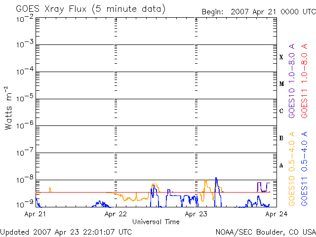 De operationele data in de bovenstaande grafiek werd aangepast om de schaalfactor te verwijderen die werd toegepast door het Space Weather Prediction Center (SWPC). Vanwege de SWPC-schaalfactor in de operationele data werden de zonnevlammen 42% kleiner gerapporteerd dan deze in de wetenschappelijke data. De schaalfactor werd ook verwijderd uit de lijst met zonnevlammen om de werkelijke fysieke eenheden weer te geven.