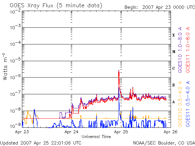De operationele data in de bovenstaande grafiek werd aangepast om de schaalfactor te verwijderen die werd toegepast door het Space Weather Prediction Center (SWPC). Vanwege de SWPC-schaalfactor in de operationele data werden de zonnevlammen 42% kleiner gerapporteerd dan deze in de wetenschappelijke data. De schaalfactor werd ook verwijderd uit de lijst met zonnevlammen om de werkelijke fysieke eenheden weer te geven.
