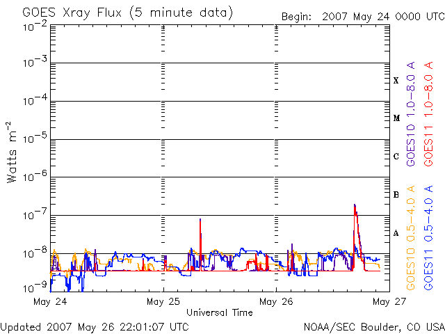 De operationele data in de bovenstaande grafiek werd aangepast om de schaalfactor te verwijderen die werd toegepast door het Space Weather Prediction Center (SWPC). Vanwege de SWPC-schaalfactor in de operationele data werden de zonnevlammen 42% kleiner gerapporteerd dan deze in de wetenschappelijke data. De schaalfactor werd ook verwijderd uit de lijst met zonnevlammen om de werkelijke fysieke eenheden weer te geven.