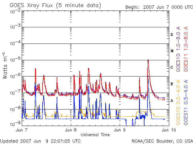 De operationele data in de bovenstaande grafiek werd aangepast om de schaalfactor te verwijderen die werd toegepast door het Space Weather Prediction Center (SWPC). Vanwege de SWPC-schaalfactor in de operationele data werden de zonnevlammen 42% kleiner gerapporteerd dan deze in de wetenschappelijke data. De schaalfactor werd ook verwijderd uit de lijst met zonnevlammen om de werkelijke fysieke eenheden weer te geven.