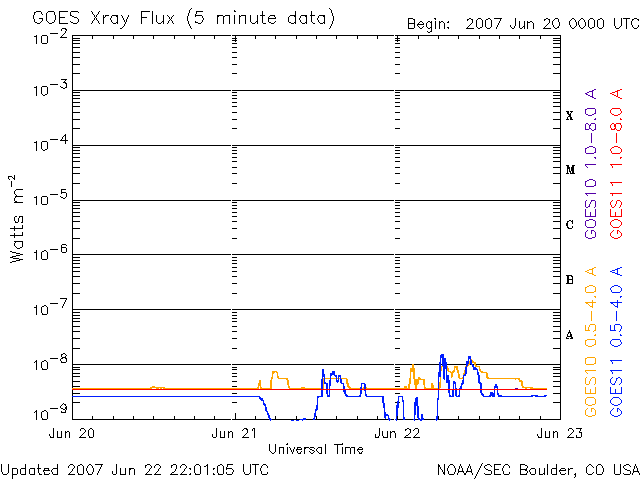 De operationele data in de bovenstaande grafiek werd aangepast om de schaalfactor te verwijderen die werd toegepast door het Space Weather Prediction Center (SWPC). Vanwege de SWPC-schaalfactor in de operationele data werden de zonnevlammen 42% kleiner gerapporteerd dan deze in de wetenschappelijke data. De schaalfactor werd ook verwijderd uit de lijst met zonnevlammen om de werkelijke fysieke eenheden weer te geven.