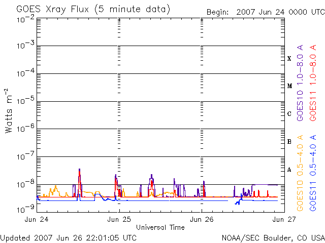De operationele data in de bovenstaande grafiek werd aangepast om de schaalfactor te verwijderen die werd toegepast door het Space Weather Prediction Center (SWPC). Vanwege de SWPC-schaalfactor in de operationele data werden de zonnevlammen 42% kleiner gerapporteerd dan deze in de wetenschappelijke data. De schaalfactor werd ook verwijderd uit de lijst met zonnevlammen om de werkelijke fysieke eenheden weer te geven.