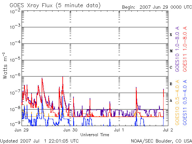 De operationele data in de bovenstaande grafiek werd aangepast om de schaalfactor te verwijderen die werd toegepast door het Space Weather Prediction Center (SWPC). Vanwege de SWPC-schaalfactor in de operationele data werden de zonnevlammen 42% kleiner gerapporteerd dan deze in de wetenschappelijke data. De schaalfactor werd ook verwijderd uit de lijst met zonnevlammen om de werkelijke fysieke eenheden weer te geven.