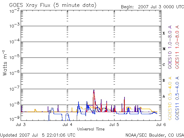 De operationele data in de bovenstaande grafiek werd aangepast om de schaalfactor te verwijderen die werd toegepast door het Space Weather Prediction Center (SWPC). Vanwege de SWPC-schaalfactor in de operationele data werden de zonnevlammen 42% kleiner gerapporteerd dan deze in de wetenschappelijke data. De schaalfactor werd ook verwijderd uit de lijst met zonnevlammen om de werkelijke fysieke eenheden weer te geven.