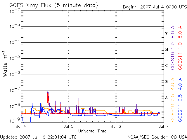 De operationele data in de bovenstaande grafiek werd aangepast om de schaalfactor te verwijderen die werd toegepast door het Space Weather Prediction Center (SWPC). Vanwege de SWPC-schaalfactor in de operationele data werden de zonnevlammen 42% kleiner gerapporteerd dan deze in de wetenschappelijke data. De schaalfactor werd ook verwijderd uit de lijst met zonnevlammen om de werkelijke fysieke eenheden weer te geven.