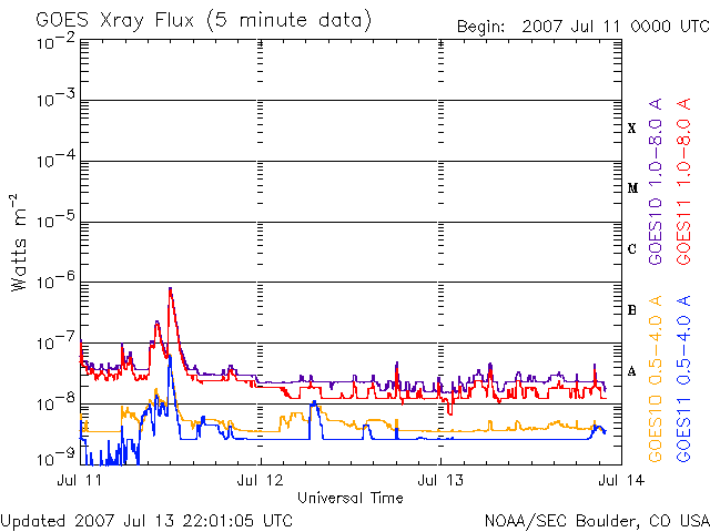 De operationele data in de bovenstaande grafiek werd aangepast om de schaalfactor te verwijderen die werd toegepast door het Space Weather Prediction Center (SWPC). Vanwege de SWPC-schaalfactor in de operationele data werden de zonnevlammen 42% kleiner gerapporteerd dan deze in de wetenschappelijke data. De schaalfactor werd ook verwijderd uit de lijst met zonnevlammen om de werkelijke fysieke eenheden weer te geven.