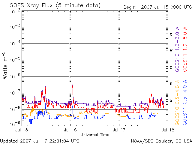 De operationele data in de bovenstaande grafiek werd aangepast om de schaalfactor te verwijderen die werd toegepast door het Space Weather Prediction Center (SWPC). Vanwege de SWPC-schaalfactor in de operationele data werden de zonnevlammen 42% kleiner gerapporteerd dan deze in de wetenschappelijke data. De schaalfactor werd ook verwijderd uit de lijst met zonnevlammen om de werkelijke fysieke eenheden weer te geven.