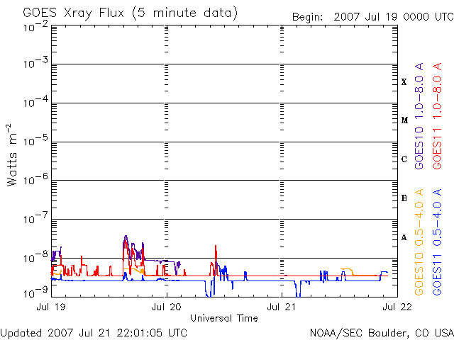 De operationele data in de bovenstaande grafiek werd aangepast om de schaalfactor te verwijderen die werd toegepast door het Space Weather Prediction Center (SWPC). Vanwege de SWPC-schaalfactor in de operationele data werden de zonnevlammen 42% kleiner gerapporteerd dan deze in de wetenschappelijke data. De schaalfactor werd ook verwijderd uit de lijst met zonnevlammen om de werkelijke fysieke eenheden weer te geven.