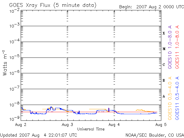 De operationele data in de bovenstaande grafiek werd aangepast om de schaalfactor te verwijderen die werd toegepast door het Space Weather Prediction Center (SWPC). Vanwege de SWPC-schaalfactor in de operationele data werden de zonnevlammen 42% kleiner gerapporteerd dan deze in de wetenschappelijke data. De schaalfactor werd ook verwijderd uit de lijst met zonnevlammen om de werkelijke fysieke eenheden weer te geven.