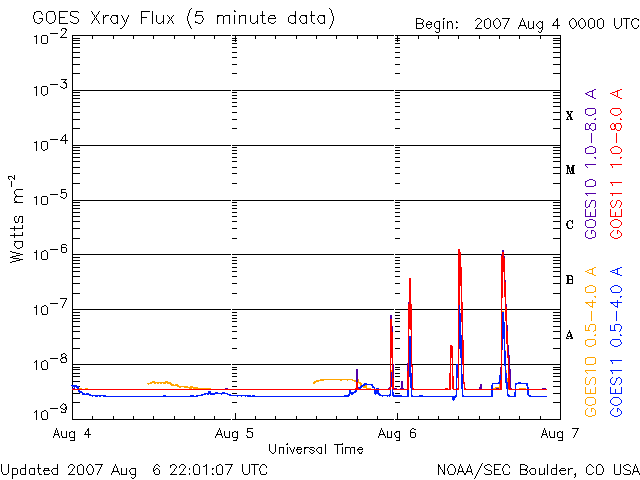 De operationele data in de bovenstaande grafiek werd aangepast om de schaalfactor te verwijderen die werd toegepast door het Space Weather Prediction Center (SWPC). Vanwege de SWPC-schaalfactor in de operationele data werden de zonnevlammen 42% kleiner gerapporteerd dan deze in de wetenschappelijke data. De schaalfactor werd ook verwijderd uit de lijst met zonnevlammen om de werkelijke fysieke eenheden weer te geven.