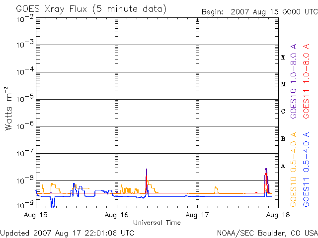 De operationele data in de bovenstaande grafiek werd aangepast om de schaalfactor te verwijderen die werd toegepast door het Space Weather Prediction Center (SWPC). Vanwege de SWPC-schaalfactor in de operationele data werden de zonnevlammen 42% kleiner gerapporteerd dan deze in de wetenschappelijke data. De schaalfactor werd ook verwijderd uit de lijst met zonnevlammen om de werkelijke fysieke eenheden weer te geven.