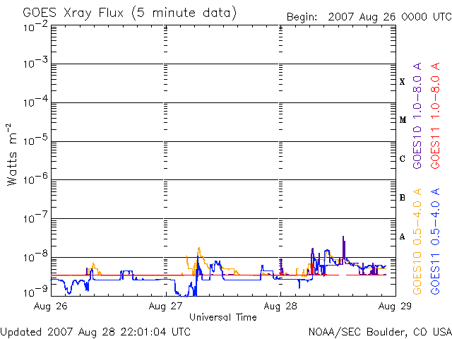 De operationele data in de bovenstaande grafiek werd aangepast om de schaalfactor te verwijderen die werd toegepast door het Space Weather Prediction Center (SWPC). Vanwege de SWPC-schaalfactor in de operationele data werden de zonnevlammen 42% kleiner gerapporteerd dan deze in de wetenschappelijke data. De schaalfactor werd ook verwijderd uit de lijst met zonnevlammen om de werkelijke fysieke eenheden weer te geven.
