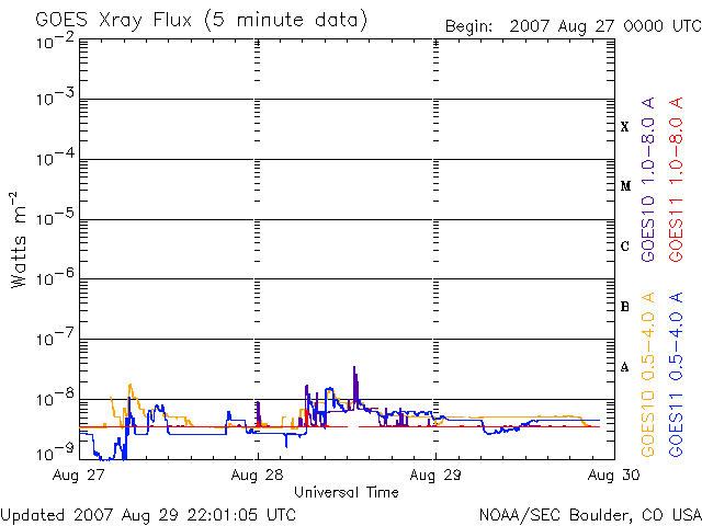 De operationele data in de bovenstaande grafiek werd aangepast om de schaalfactor te verwijderen die werd toegepast door het Space Weather Prediction Center (SWPC). Vanwege de SWPC-schaalfactor in de operationele data werden de zonnevlammen 42% kleiner gerapporteerd dan deze in de wetenschappelijke data. De schaalfactor werd ook verwijderd uit de lijst met zonnevlammen om de werkelijke fysieke eenheden weer te geven.