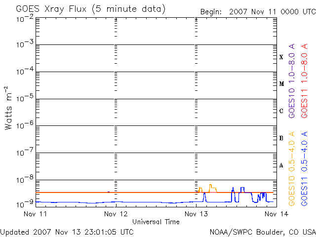 De operationele data in de bovenstaande grafiek werd aangepast om de schaalfactor te verwijderen die werd toegepast door het Space Weather Prediction Center (SWPC). Vanwege de SWPC-schaalfactor in de operationele data werden de zonnevlammen 42% kleiner gerapporteerd dan deze in de wetenschappelijke data. De schaalfactor werd ook verwijderd uit de lijst met zonnevlammen om de werkelijke fysieke eenheden weer te geven.