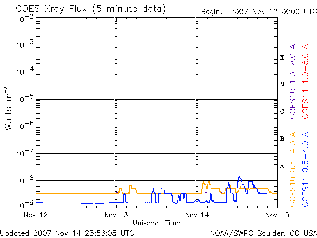 De operationele data in de bovenstaande grafiek werd aangepast om de schaalfactor te verwijderen die werd toegepast door het Space Weather Prediction Center (SWPC). Vanwege de SWPC-schaalfactor in de operationele data werden de zonnevlammen 42% kleiner gerapporteerd dan deze in de wetenschappelijke data. De schaalfactor werd ook verwijderd uit de lijst met zonnevlammen om de werkelijke fysieke eenheden weer te geven.